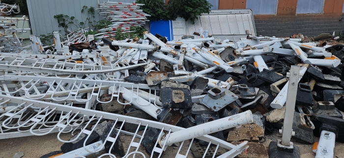 一、拍賣標的:廢舊物資一批,包括護欄、防撞桶、黃閃燈電池等,參考價:7232元。