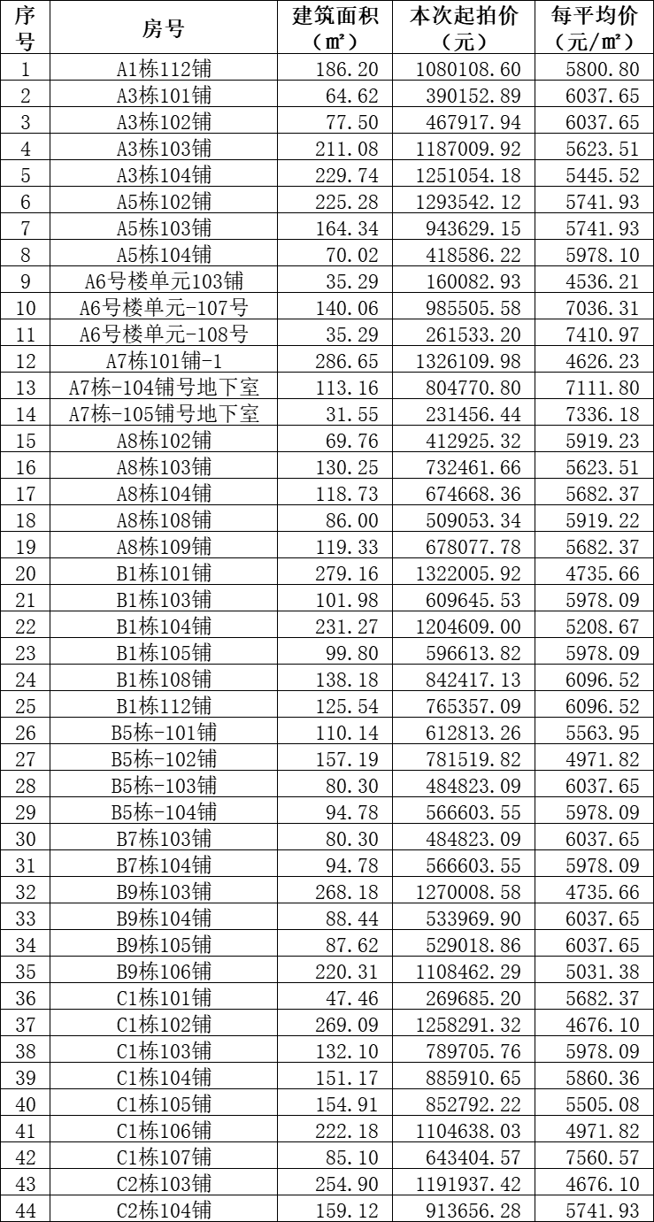 一、拍賣標(biāo)的:金寨縣梅山鎮(zhèn)金江新城商鋪,詳情見下方明細(xì)表↓